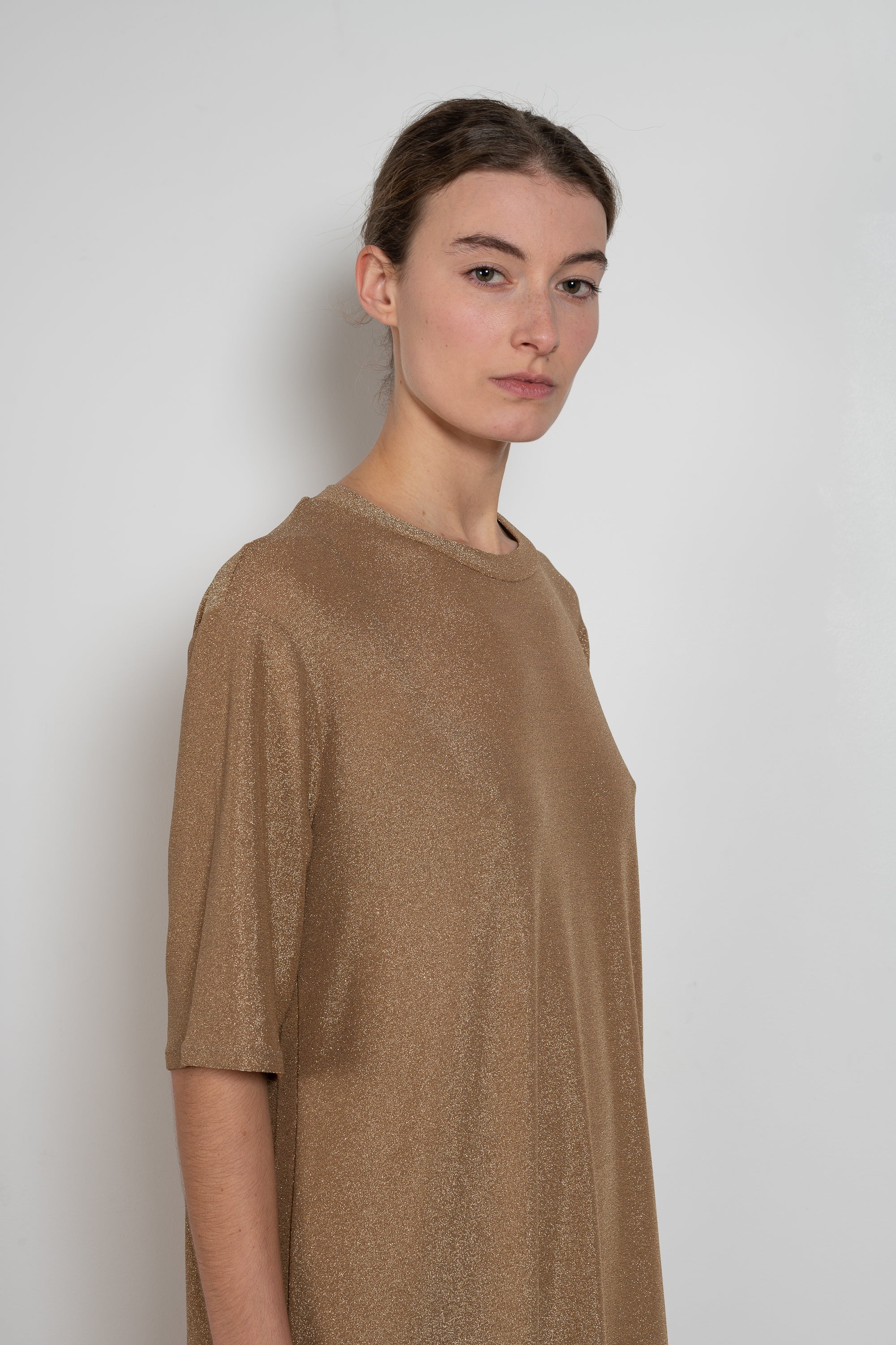 The Goddess Dress by Jamie Haller is a tee shirt knit gown that works for every festive holiday occasion. Tailored in an Italian glitter knit jersey.