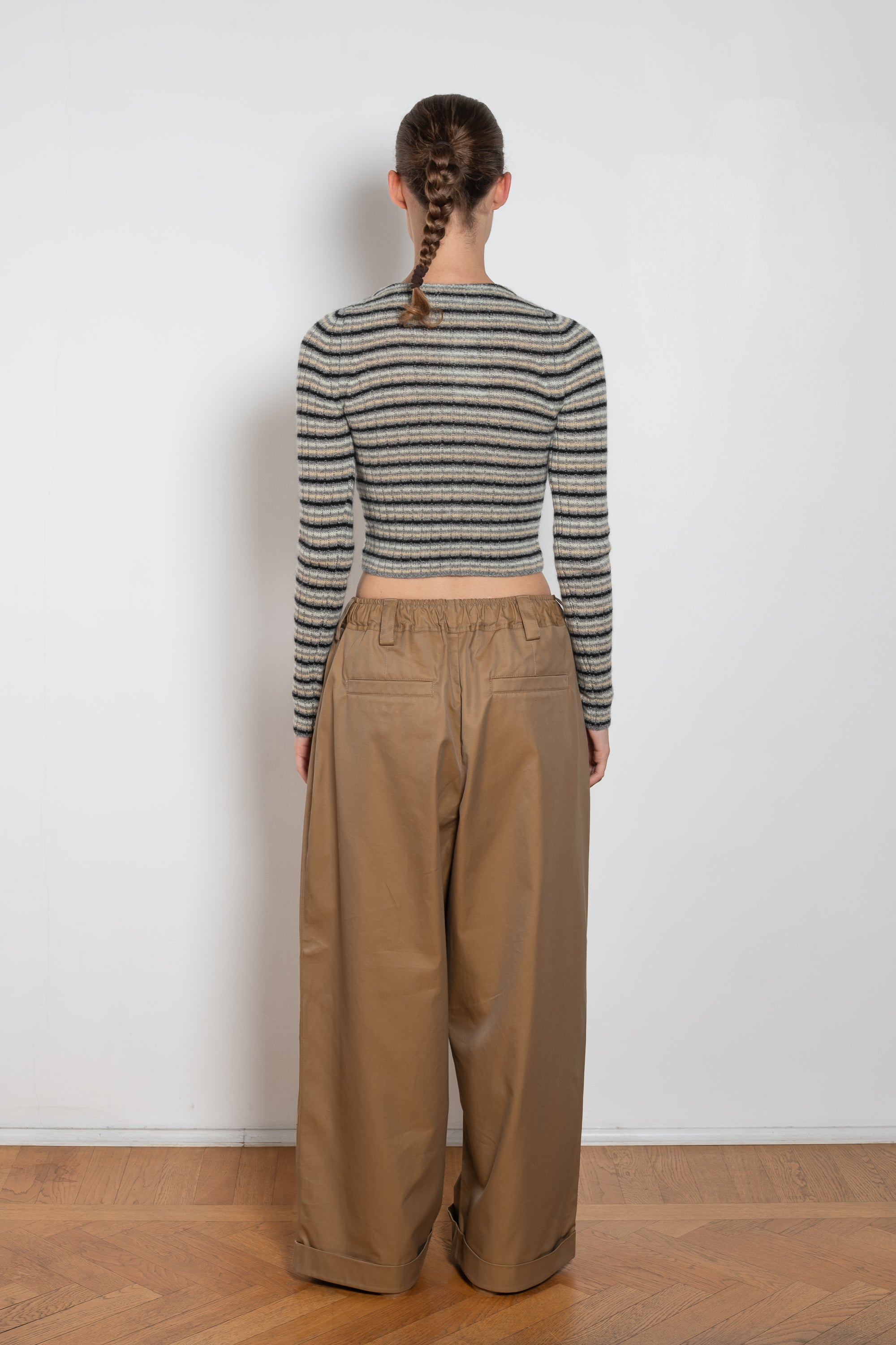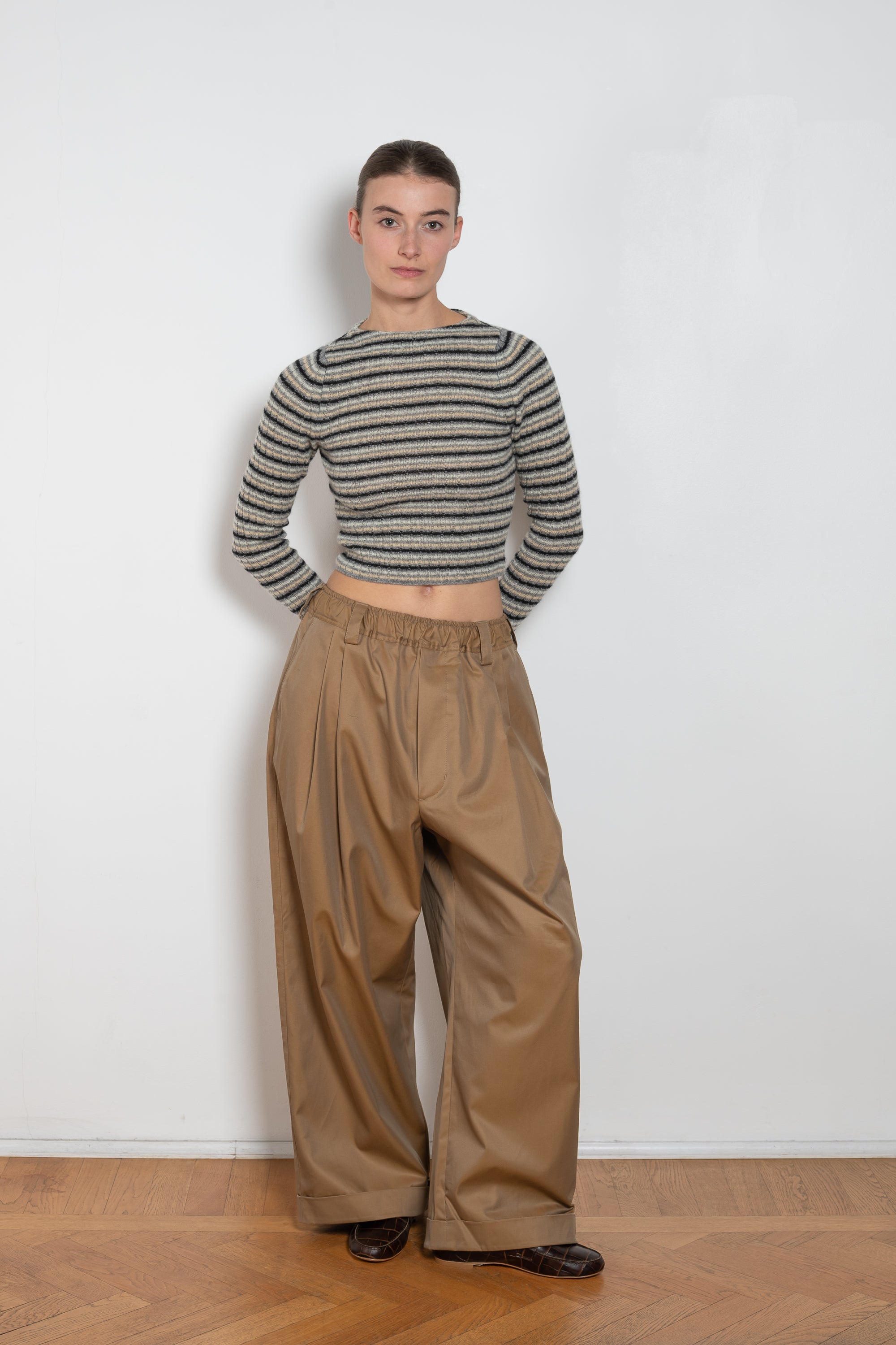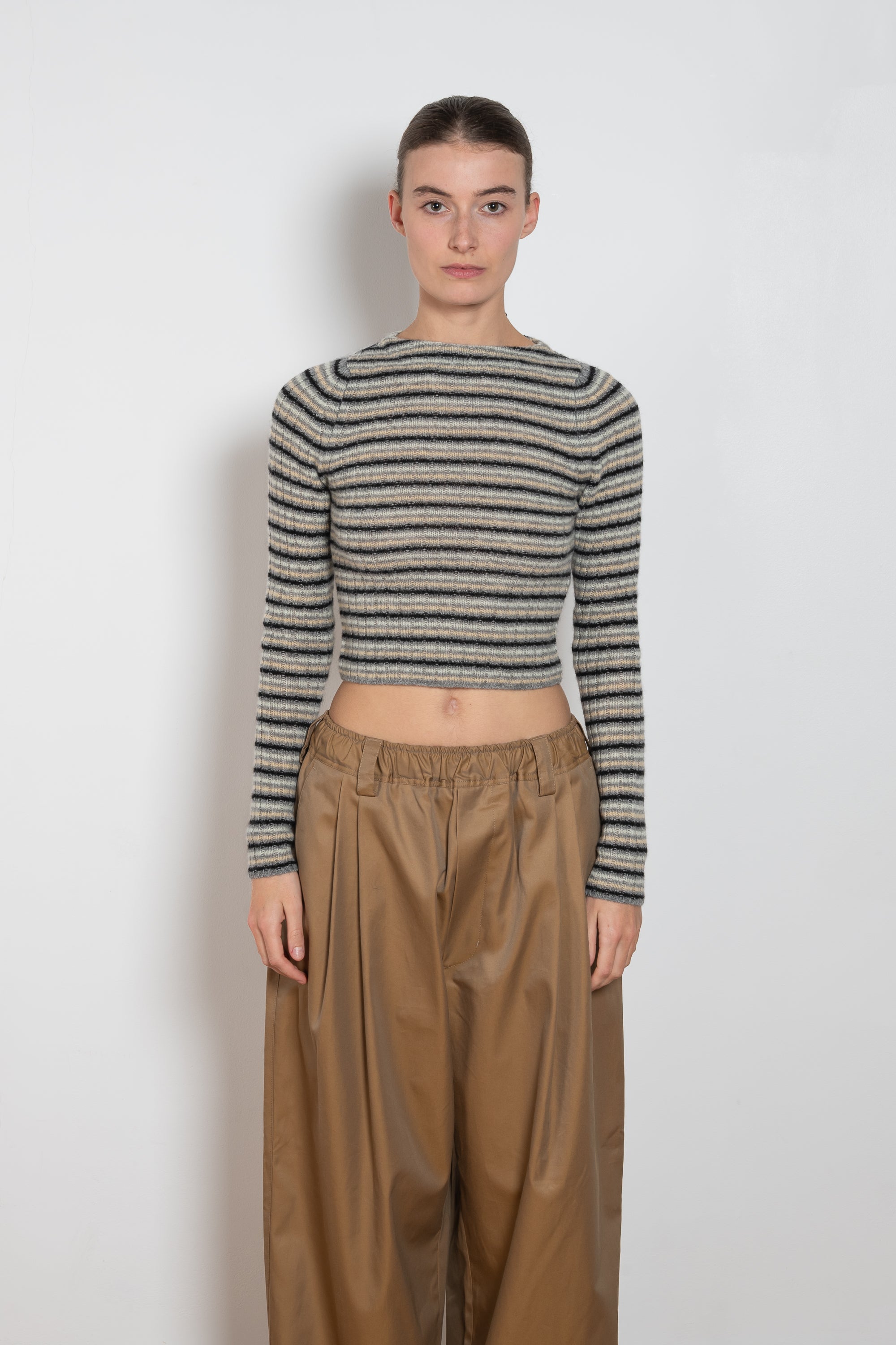 The Boatneck RIB by AURALEE is made from a blend of Shetland wool and cashmere, knitted in a low gauge. It combines the unique firmness of Shetland wool with the smooth, soft texture of cashmere.