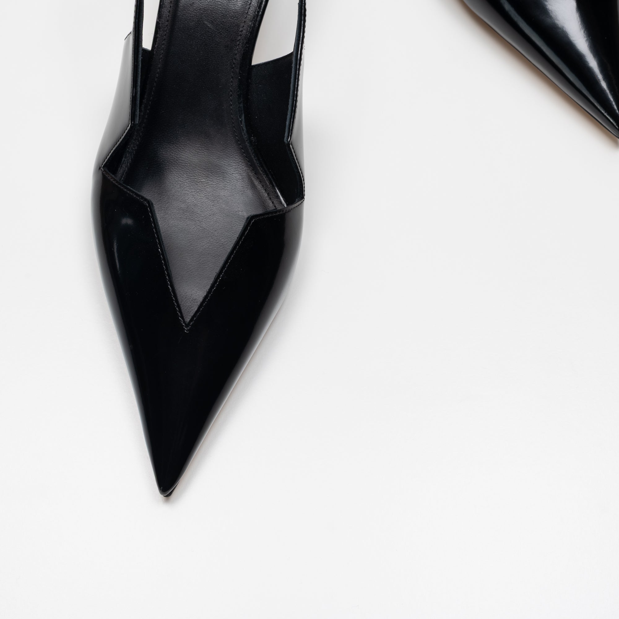 The Gloss Star Stiletto by Coperni have a slim and comfortable kitten heel for everyday wear. The front features a cut-out star shape pattern which culminates in a striking point at the toe.