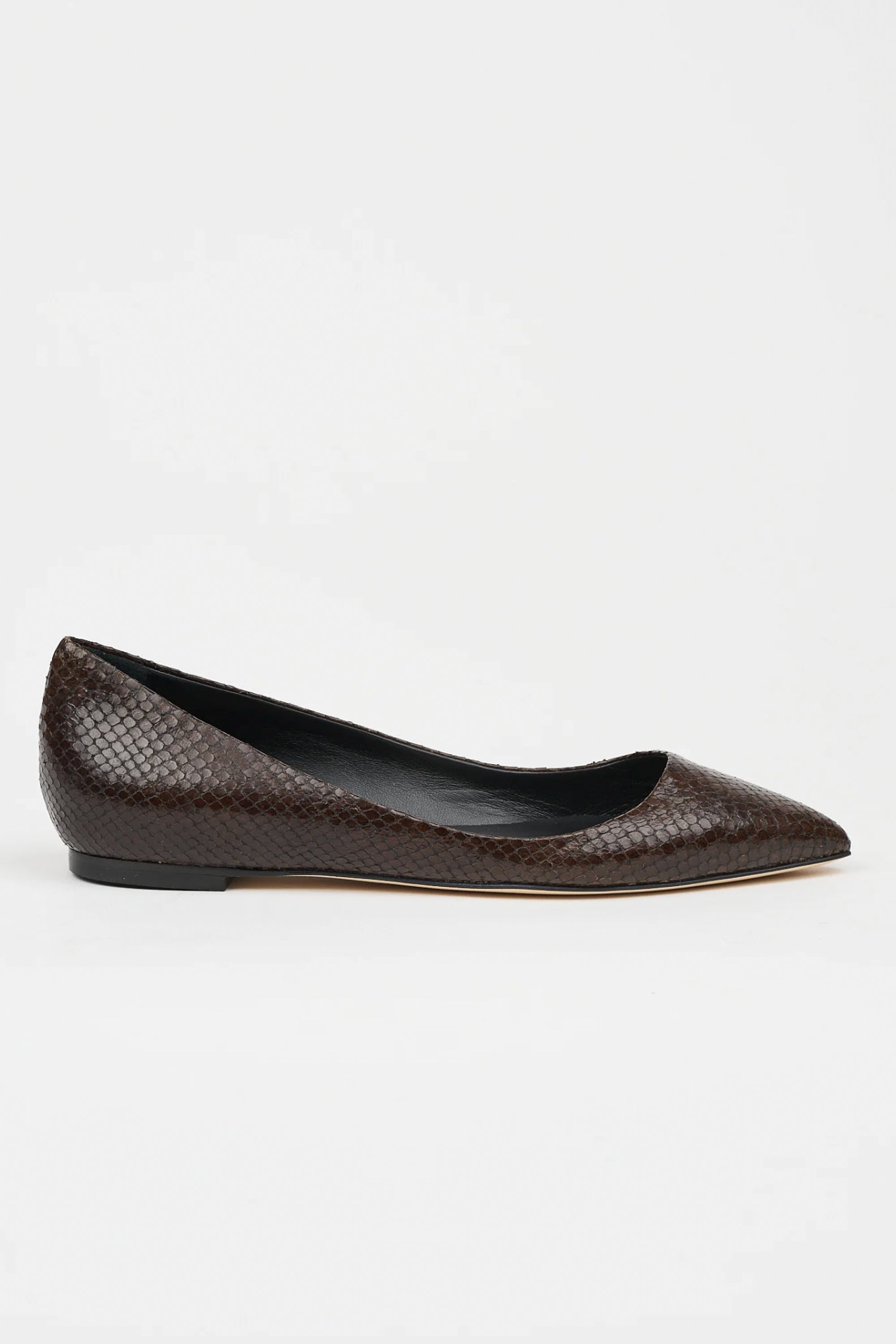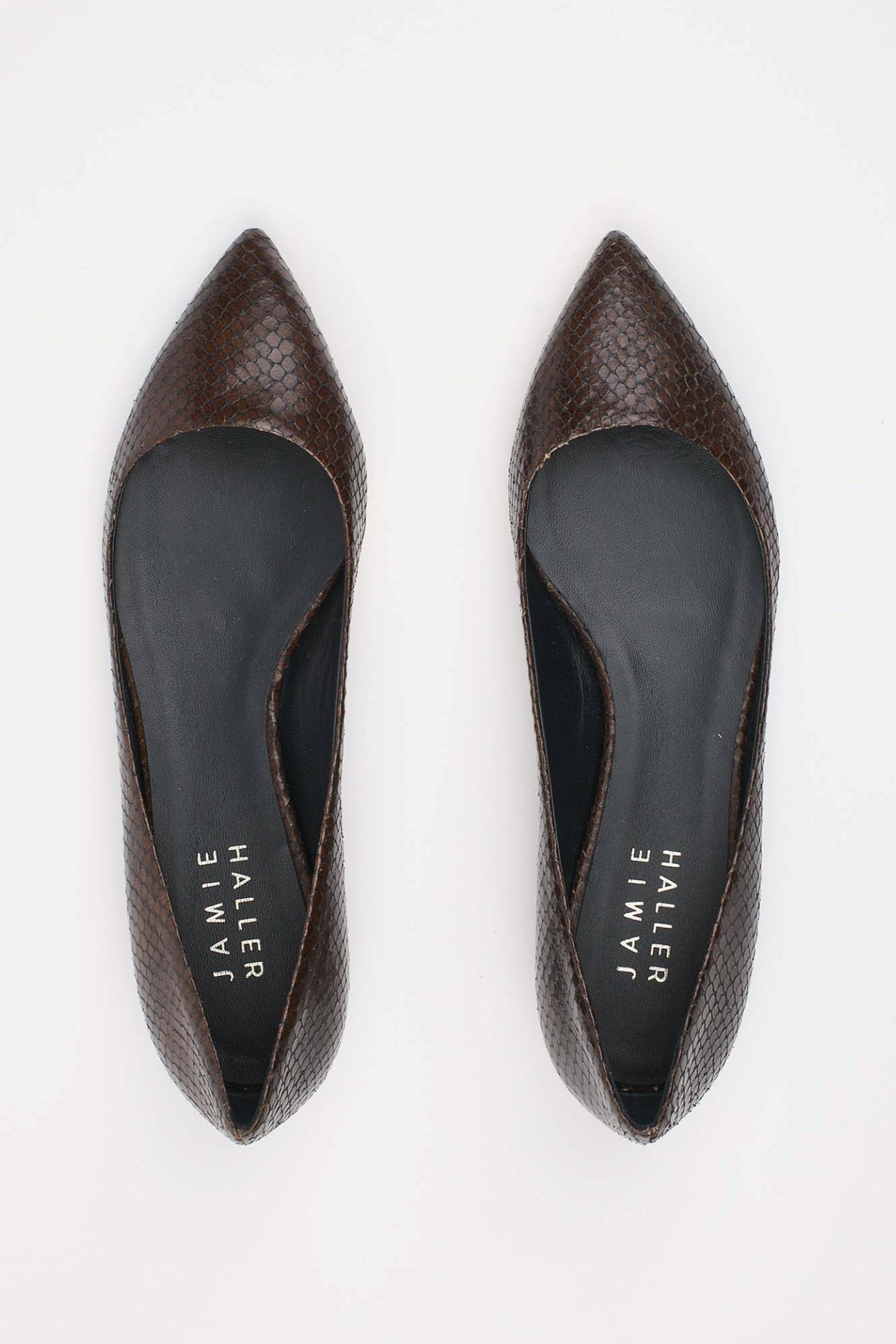 The Vamp Point by Jamie Haller a soft take on a classic staple. A beautifully shaped pointed toe flat. Minimal and advanced. The perfect shape toe to peep out from under the pants of the season. Italian lamb upper. Leather sole.