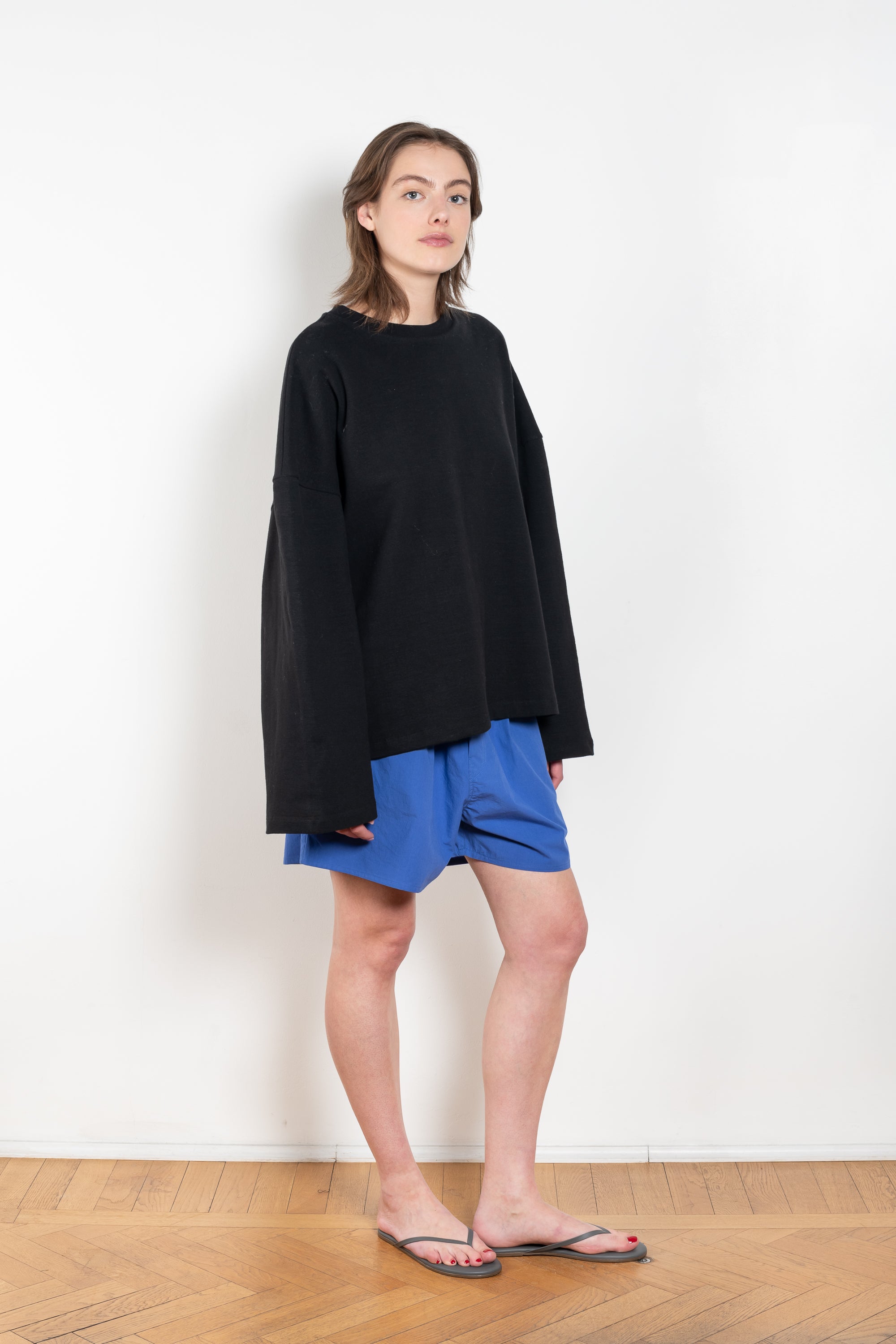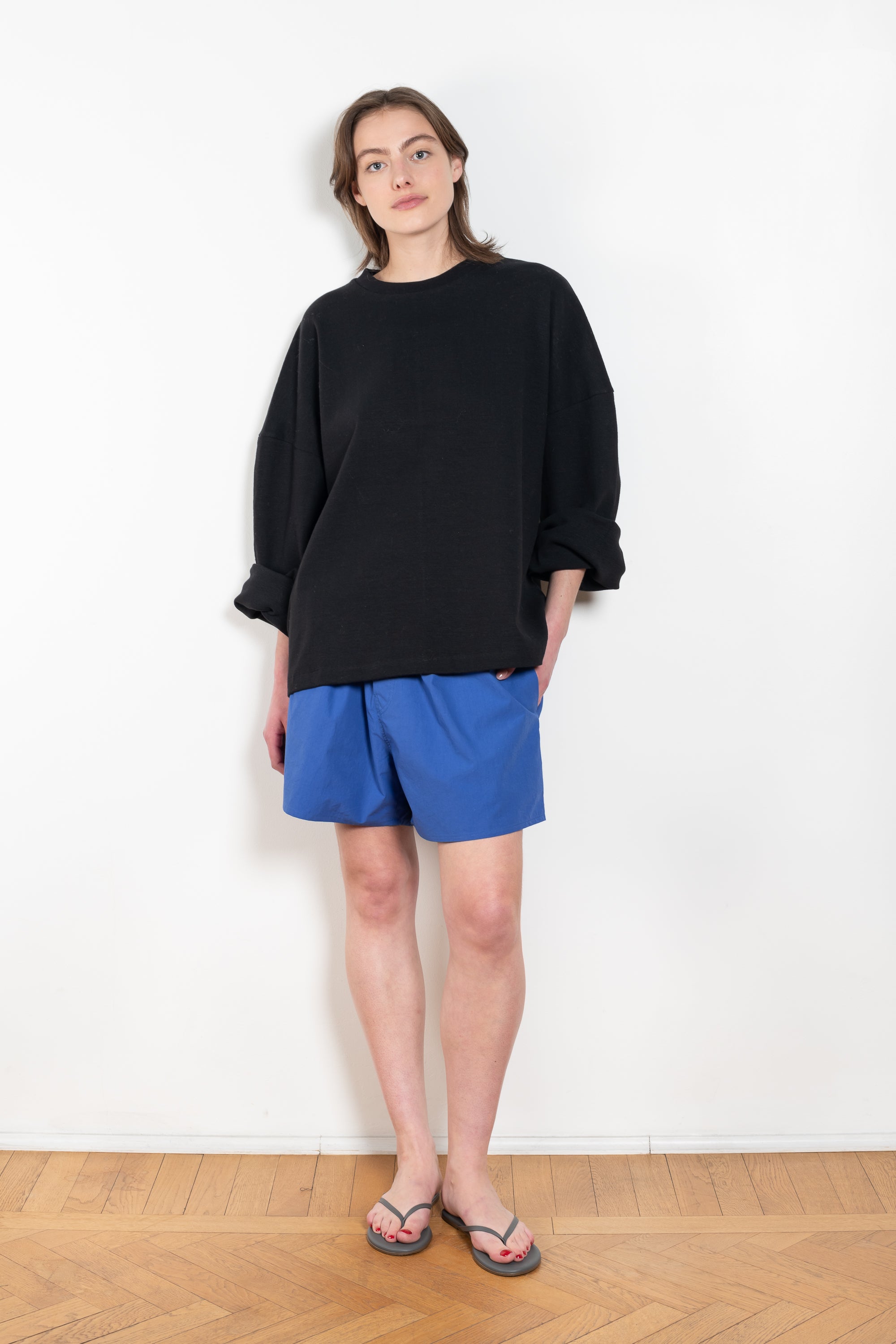 The Poplin Cotton Shorts N°1 by Maud Van Den Beussche is a relaxed short with elastic waistband in a beautiful poplin cotton