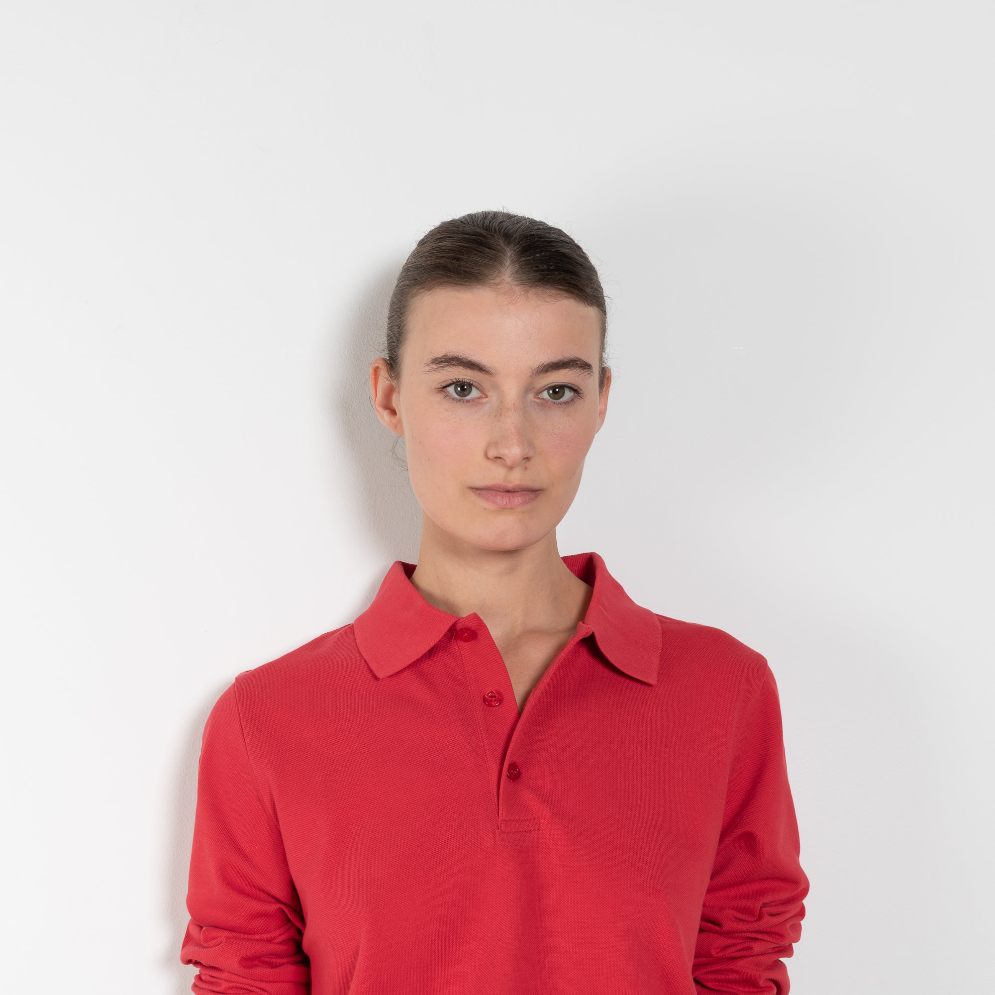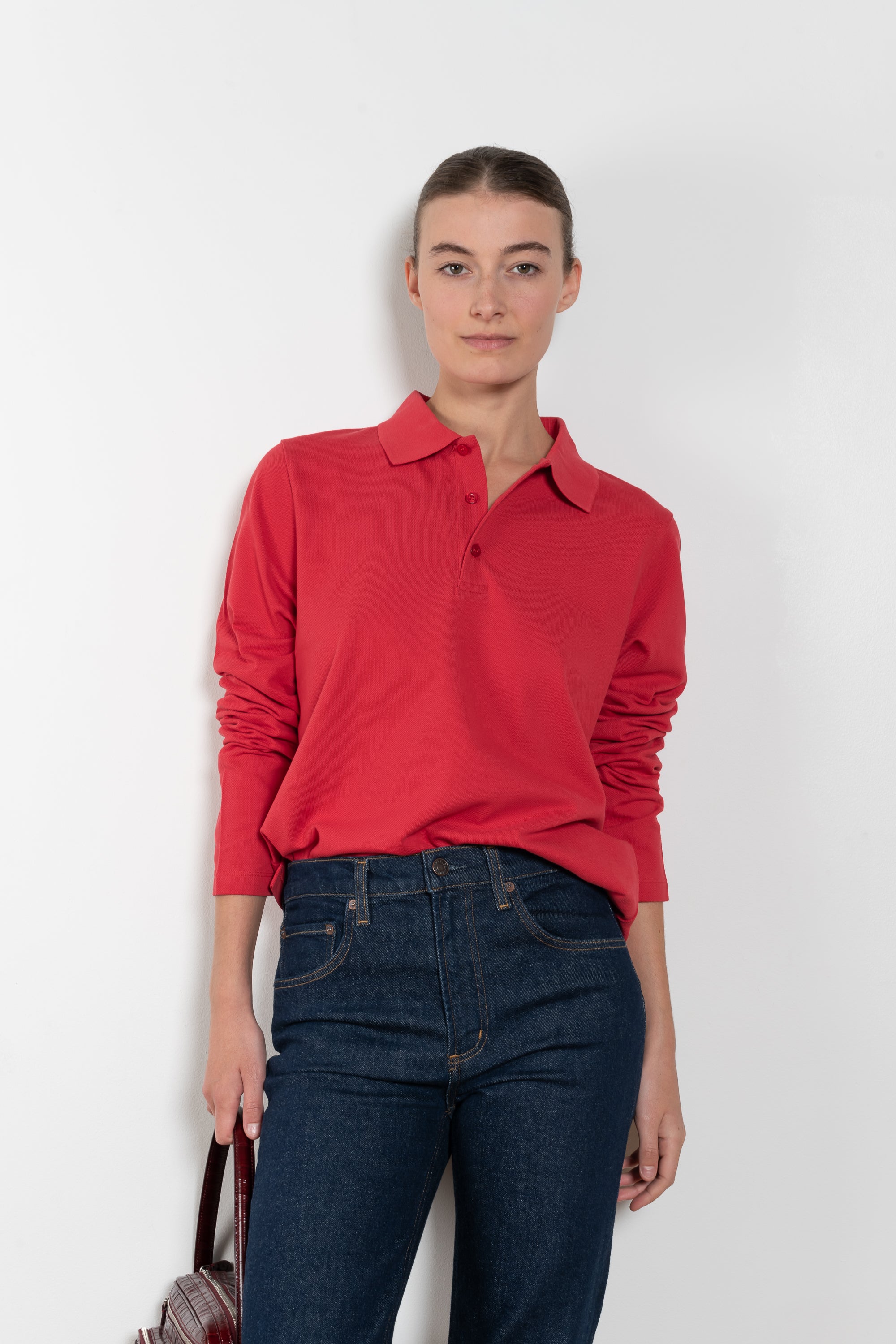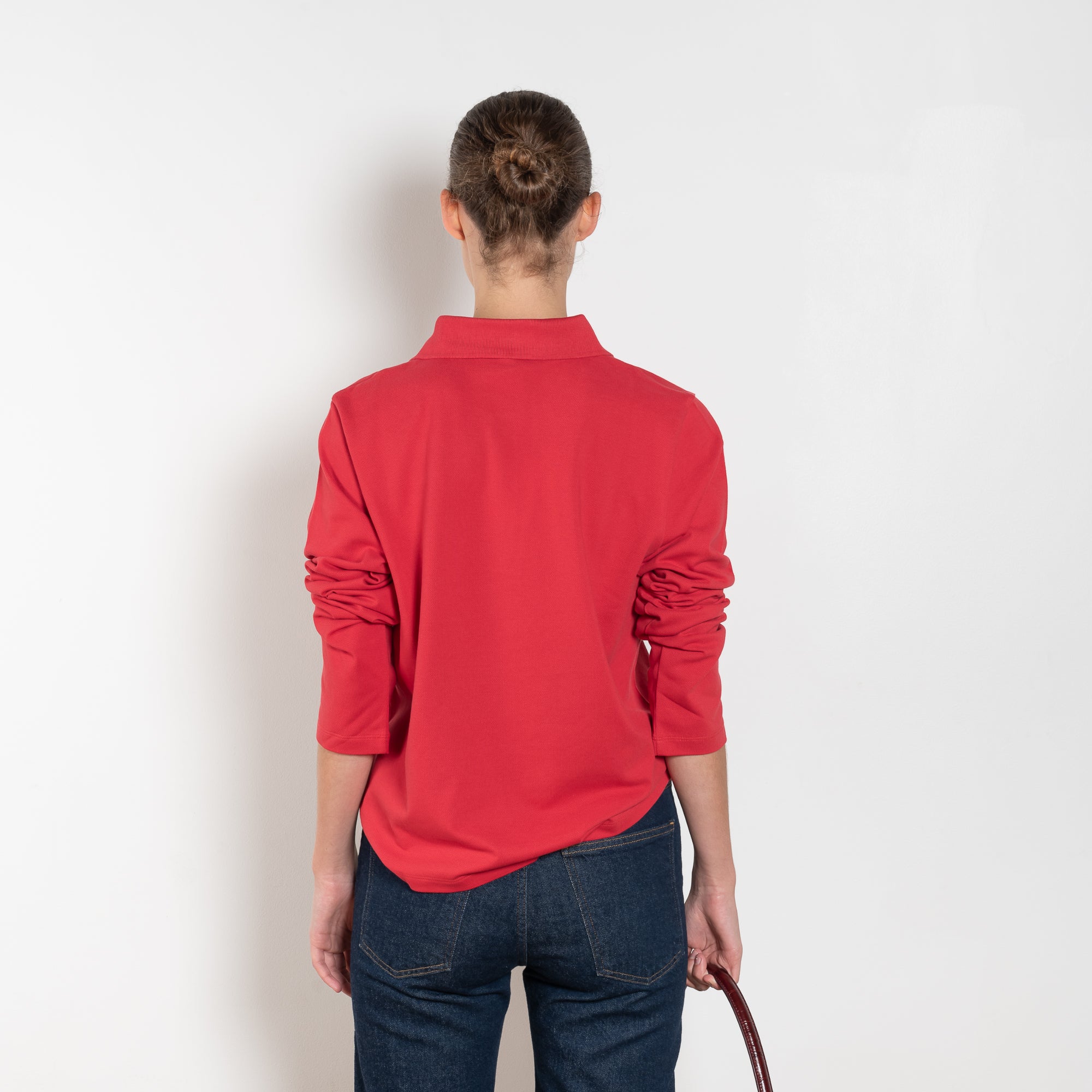 A long-sleeved polo shirt with mother of pearl buttons and a rib collar. Made from 100% organic cotton 1 x 1 rib. Pair with your favourite denim or trousers.