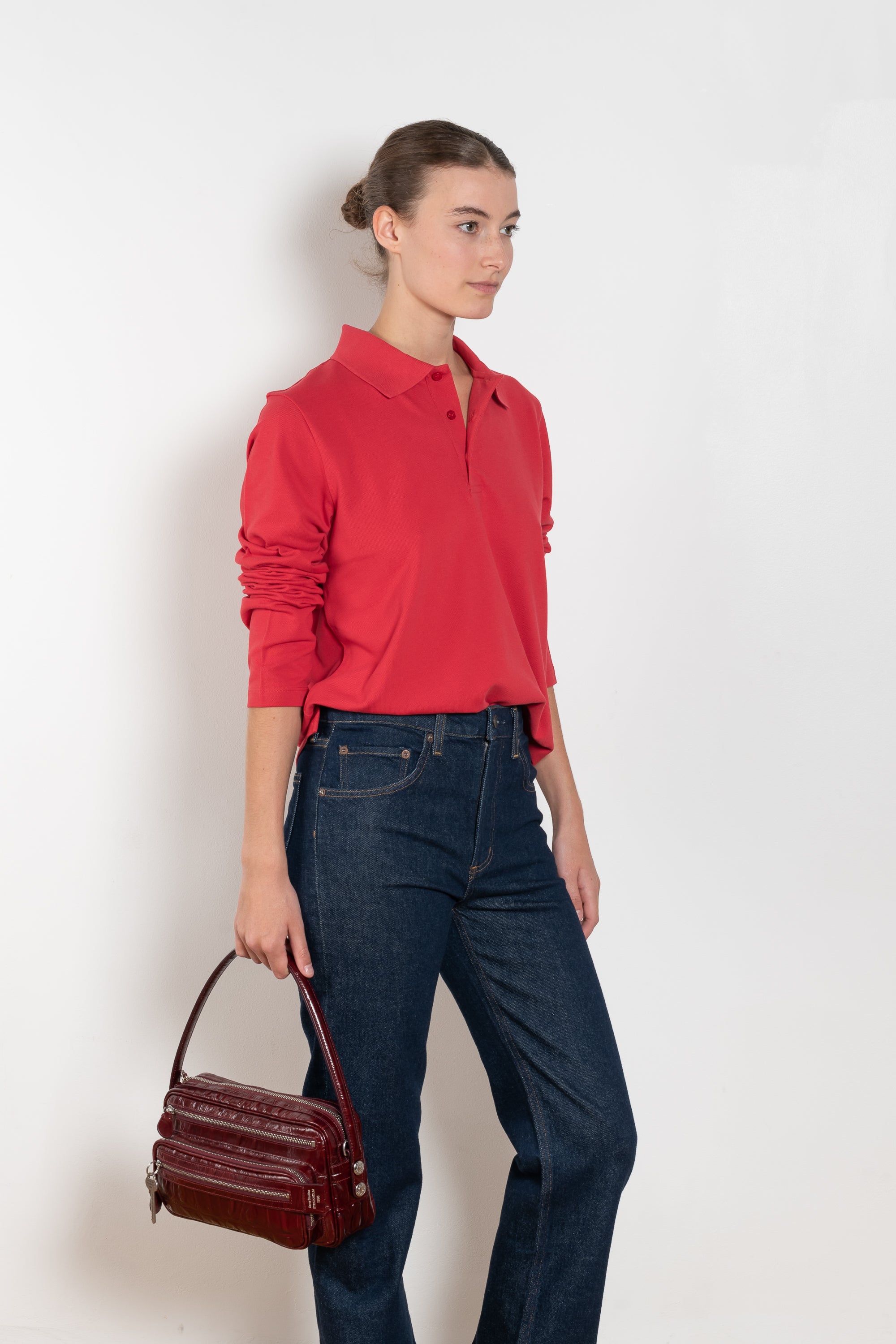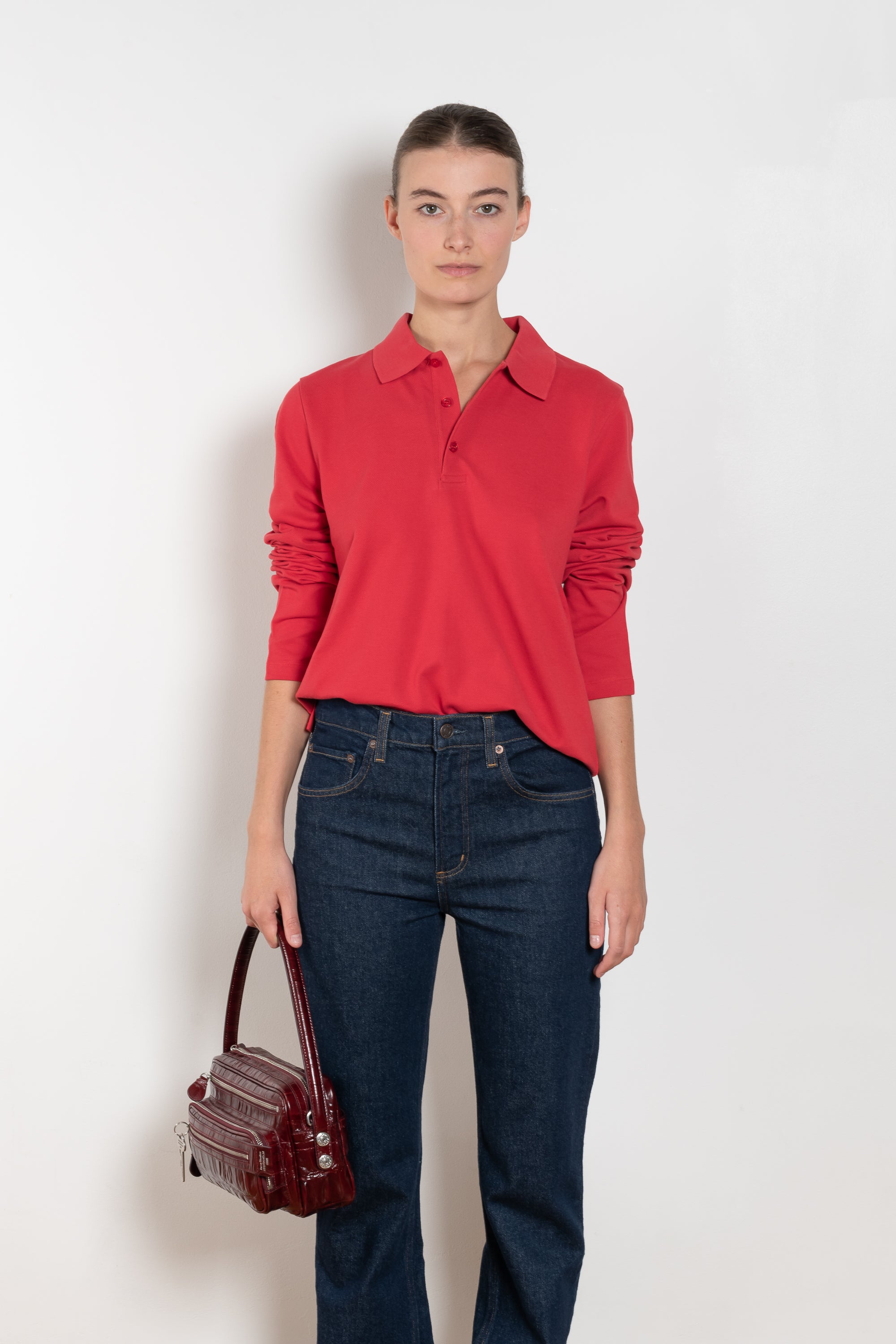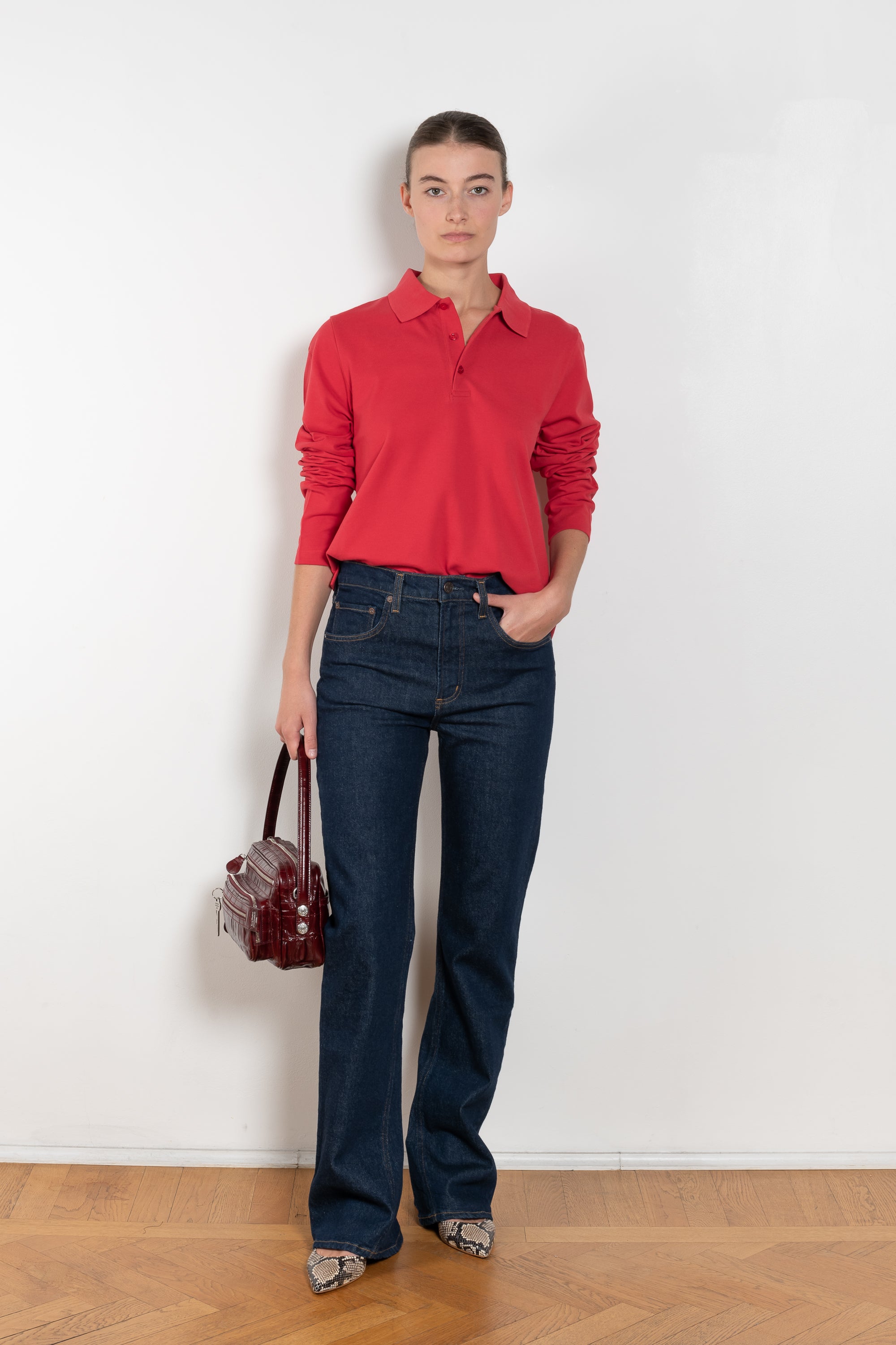A long-sleeved polo shirt with mother of pearl buttons and a rib collar. Made from 100% organic cotton 1 x 1 rib. Pair with your favourite denim or trousers.